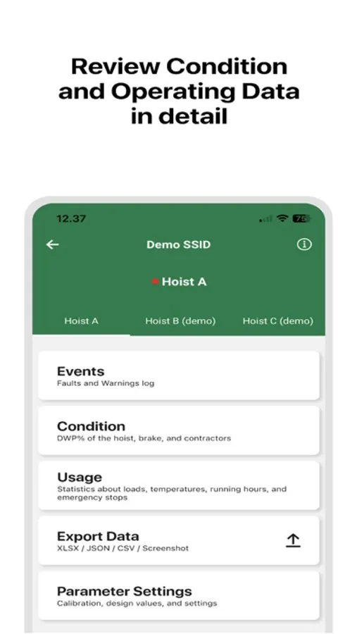 Verlinde ExpertCare app enables users to check the condition of their Verlinde hoists wirelessly. Contact Verlinde for more information (e.g. hardware requirements).