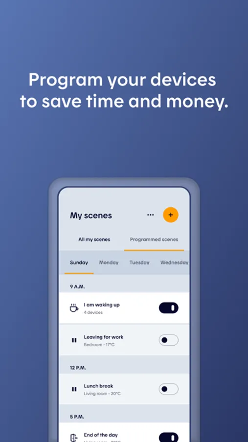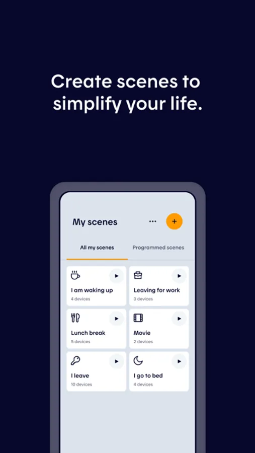 A scene allows you to control in one go several devices and to create the mood for a room by dimming a light or changing the colour of bulbs, for example.