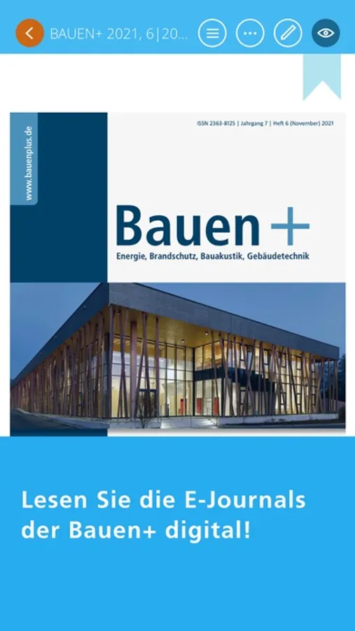 Six times a year, Bauen+ provides information on current developments, discoveries and findings in energy, fire protection, building acoustics and building technology. Planning aids, calculation methods, best-practice projects and insider knowledge provide important impulses and the necessary interdisciplinary overview for daily work.