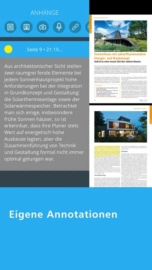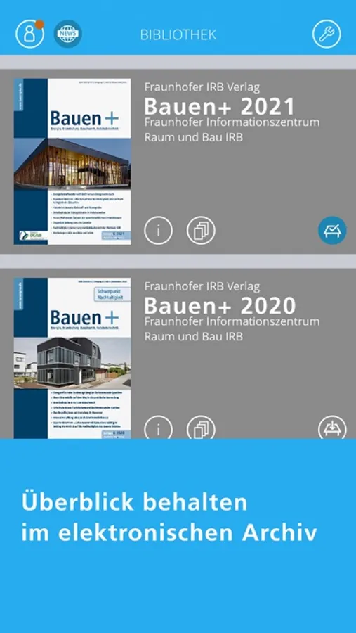 The eJournal is available earlier than the printed edition and contains additional information, such as picture series. With the preparation of Bauen+ for the app you keep track of the electronic table of contents and with the fast search function you can find your way around the documents without much effort.