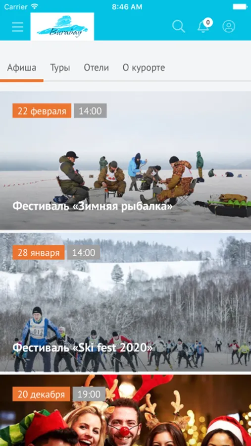 Существует пять основных разделов: Туры, Проживание, Питание, Достопримечательности и Маршруты.