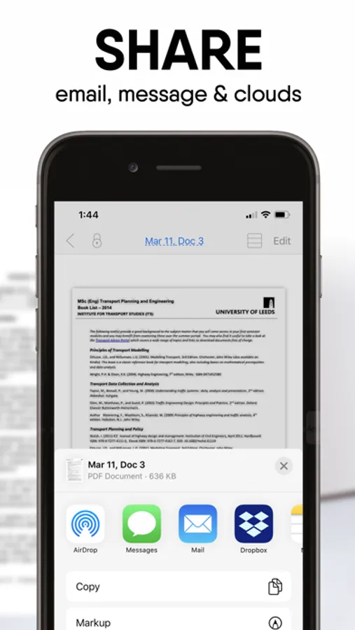 - Export scans to other apps like Files, Books