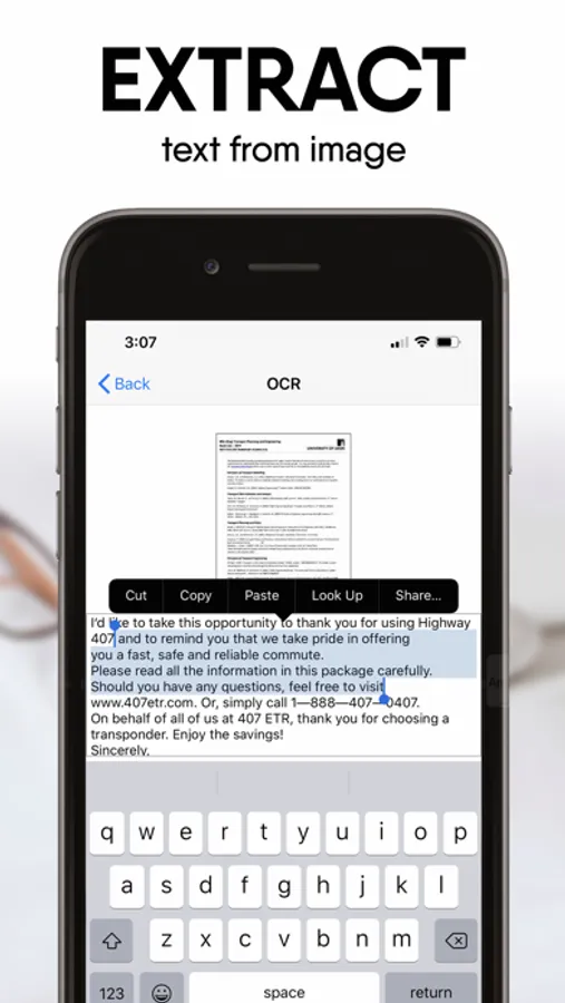 Our scanner app supports image processing and allows you to transform, rotate, sharpen your images, for best document quality, combined with OCR engine. Easily turn an image to text with the OCR function. Extract text from a scanned document and then edit it as you wish.