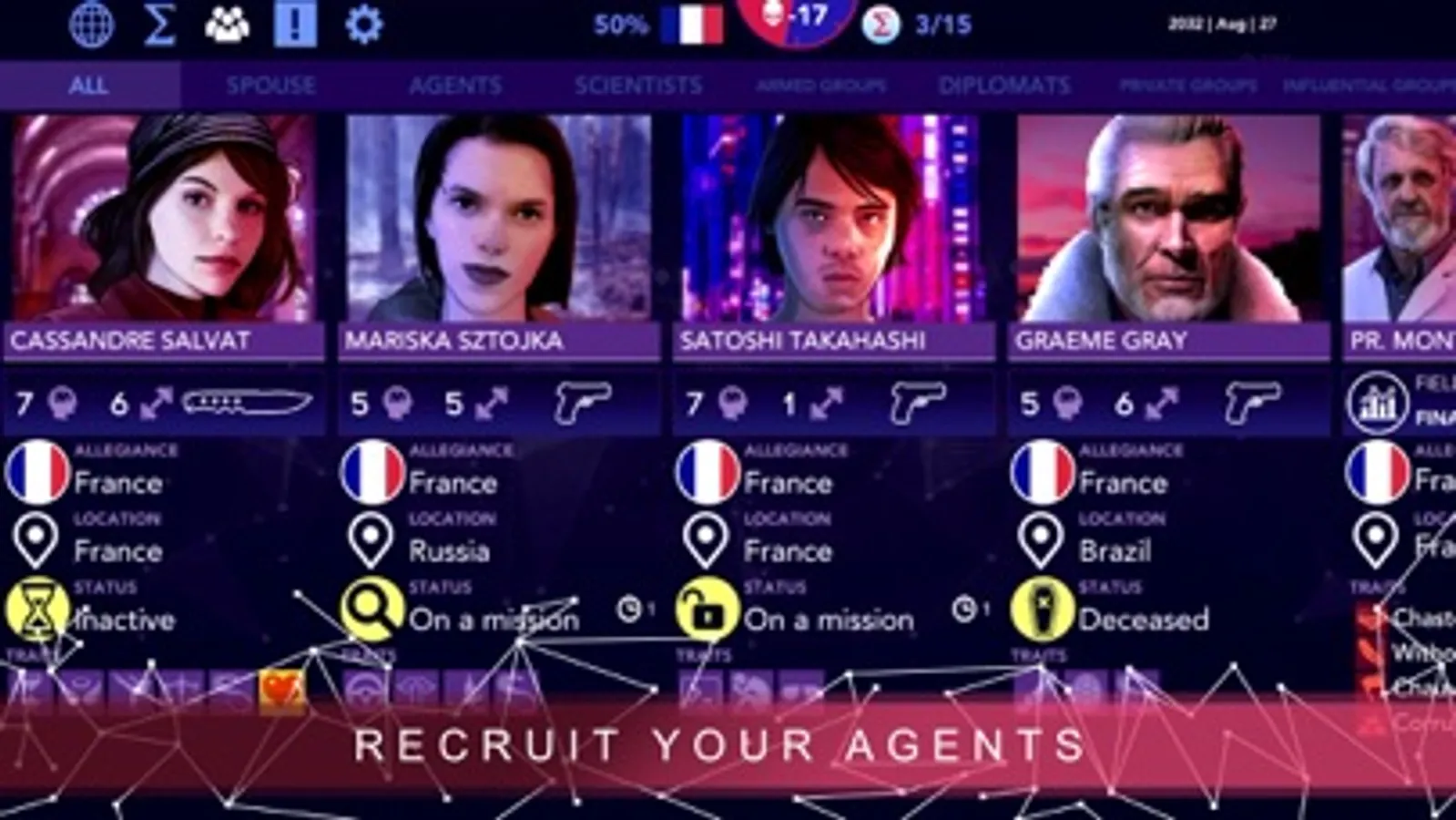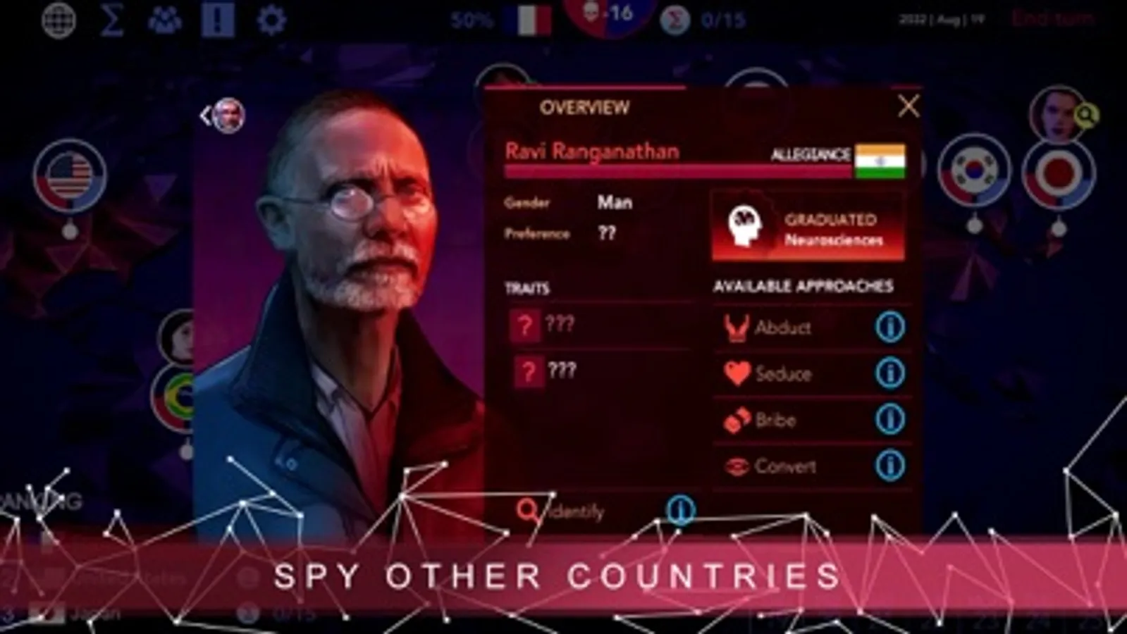 Turn-based espionage: Use your special agents to dominate the world. Seduction, blackmail, manipulation, industrial espionage… Every low blow is both permitted and encouraged.