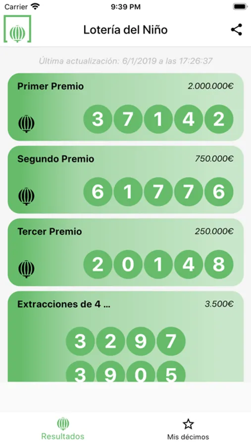 Además de esto podrás comprobar también en directo los premios que vayan saliendo! El primer, segundo y tercer premio, así como las terminaciones de 4, 3 y 2 y los reintegros.