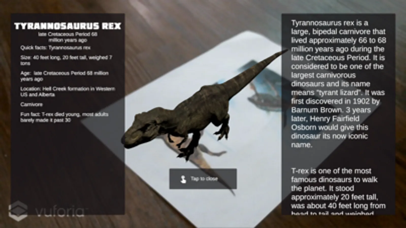 See Dinosaurs come to life on your table top! View interesting facts about each Dinosaur.