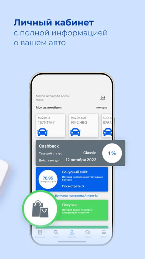 - Просматривайте все сведения об авто, историю заказов и сервиса.