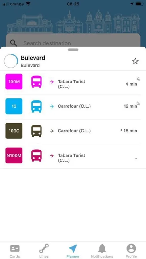 The application will display in real time the vehicle that the passenger must take and will notify them when they must change the line.
