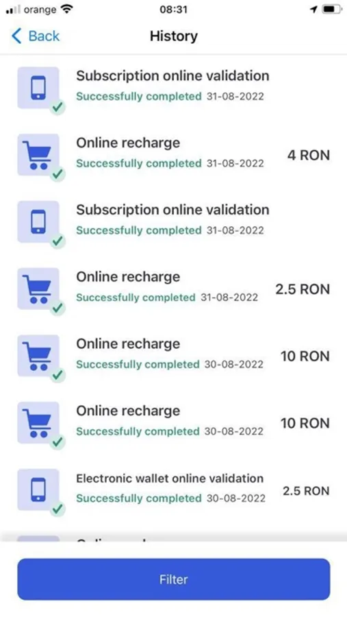 After performing the various purchase/validation/control actions, the user will have the possibility of viewing a detailed history of transactions.