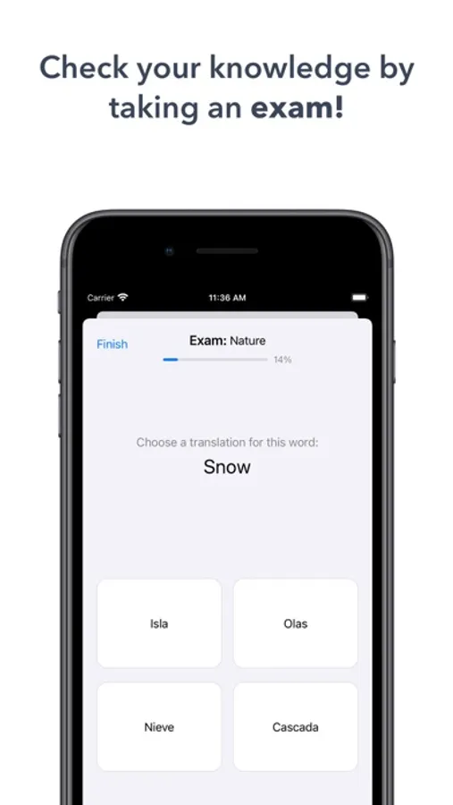Test your knowledge and translation skills with 3 types of exams. It's fun!