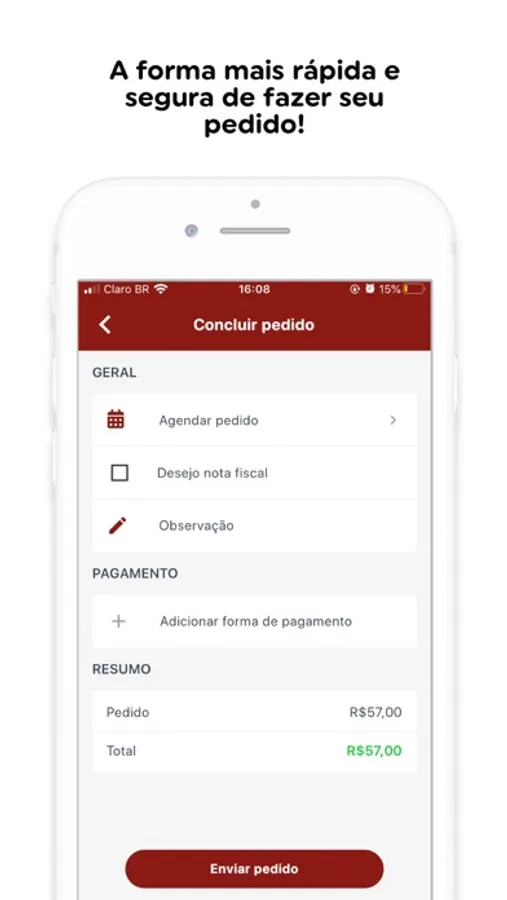 No app, você encontra de forma rápida o cardápio completo e ainda pode utilizar a ferramenta de busca para localizar diretamente os produtos que você deseja.