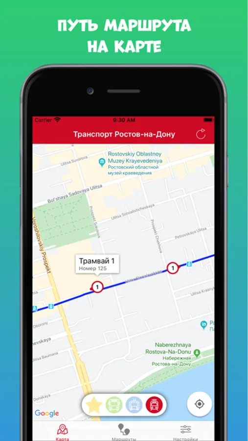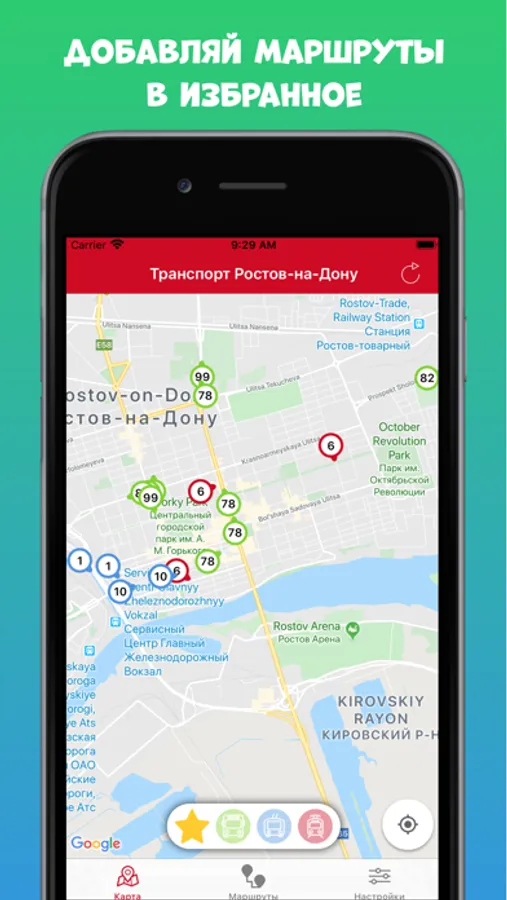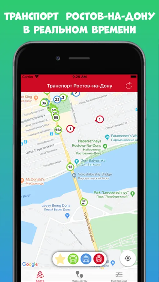 - Просмотр всего транспорта города Ростова-на-Дону на карте в реальном времени.