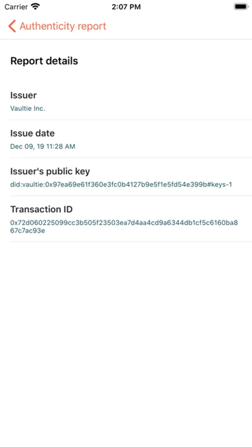 Scan the QR code on the bottom of a document signed using Vaultie to bring up an Authenticity report validated in real-time.