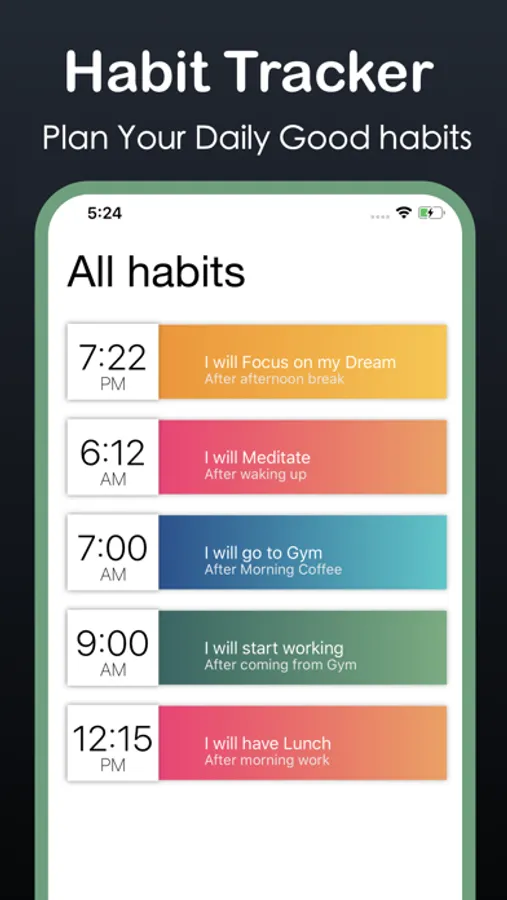Build a routine of positive and good habits. Track your goals and daily task. Countdown will always remind you for new and Upcoming Habits and Tasks ,so that you will never miss any important moments of your life.
