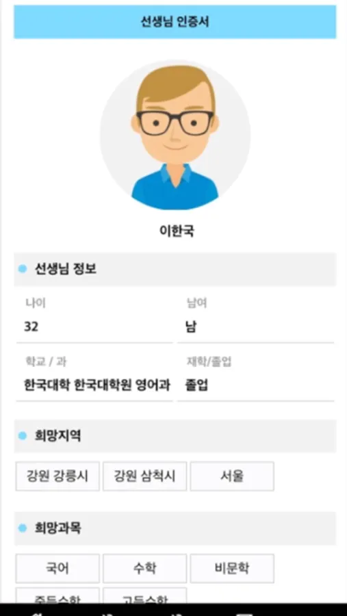 실제 개인 활동하는 선생님들의 다양한 프로필 지원을 받을 수 있습니다.