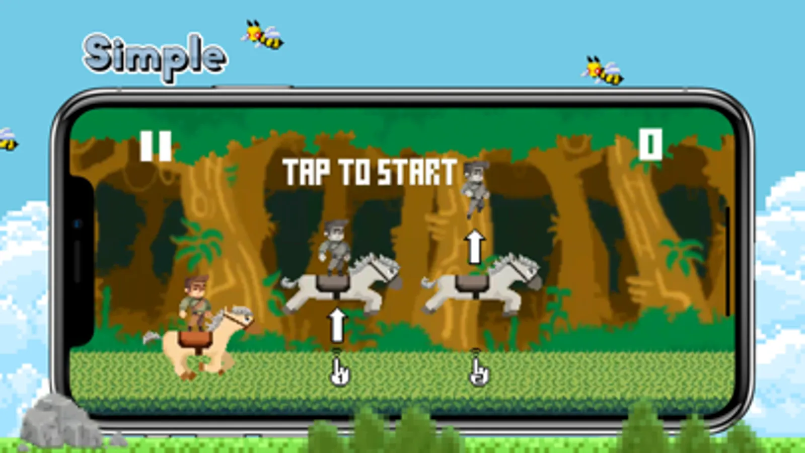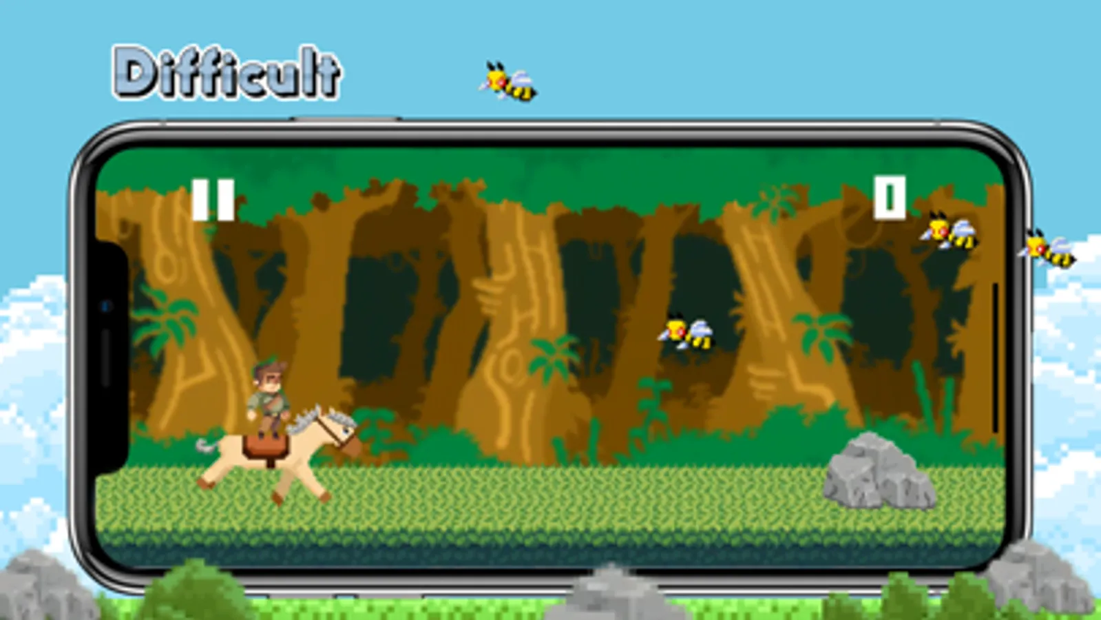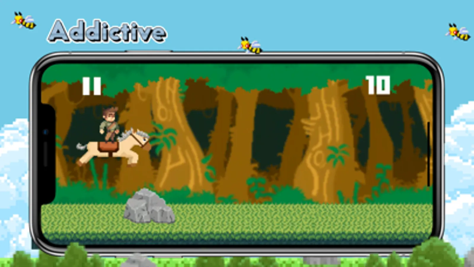 Join JumperJack and his horse Jumpony in their journey through the challenging roads of the evil forest filled with obstacles and giant bees.
