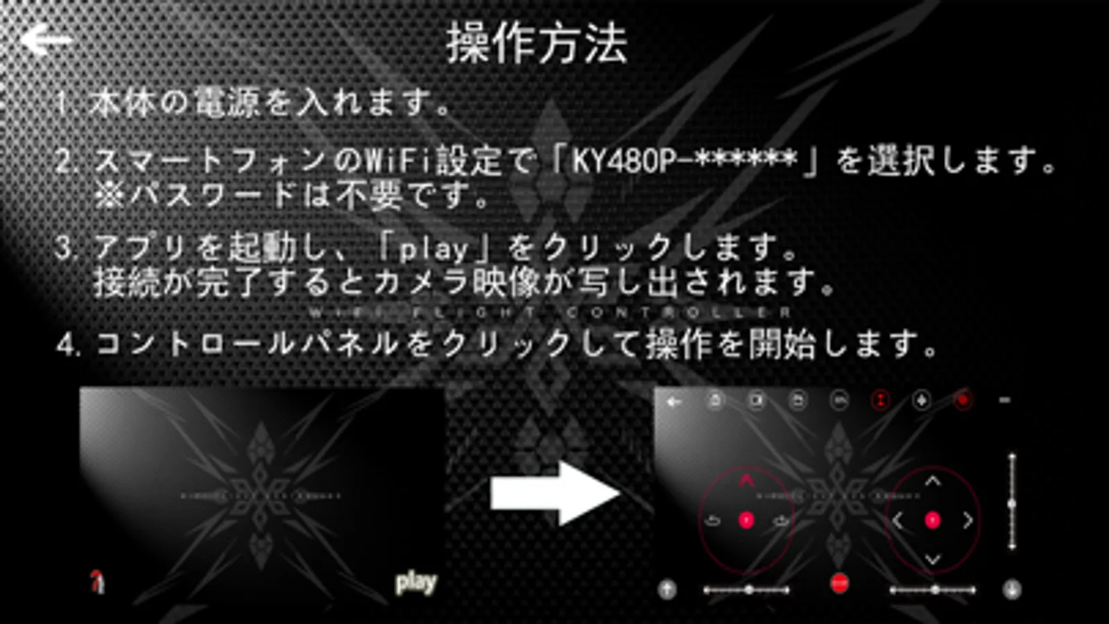 このアプリは、おもちゃのクアッドを無線WIFI画像伝送技術で制御する。