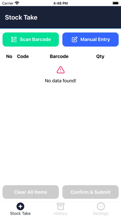 Stock take by scanning QR Code or manual entry.