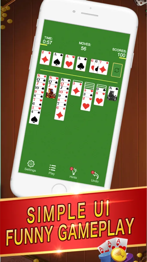Solitaire uses a standard 52 card deck of playing cards without jokers.