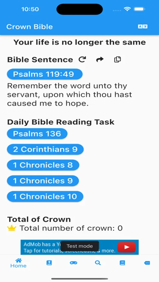 I used the Holy Inspiration to create the Crowning Bible. The purpose is to encourage brothers and sisters to read God's words more. Through the functions of the Crowning Bible to quickly search for scriptures, listen to the scriptures and record the scriptures, help brothers and sisters develop the habit of reading the scriptures every day!