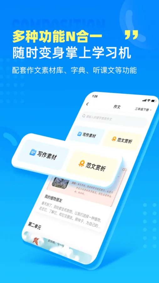 课本点读:与英语语文课本内容与校内课本100%同步,哪里不会点哪里,即点即读;支持单句重复,整册朗读,个性化复读,语速调节等功能;