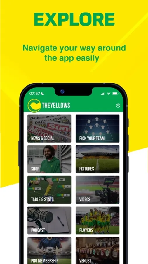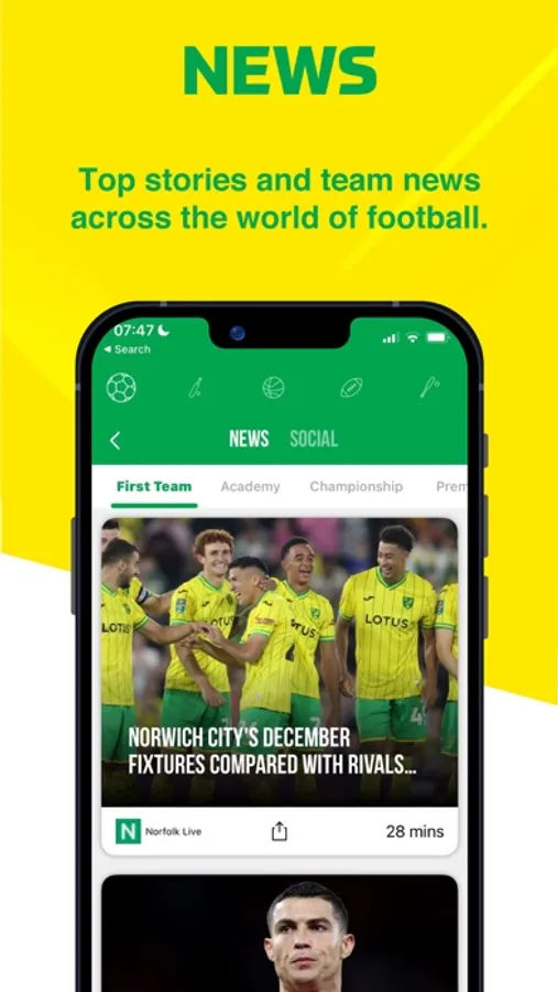 The Yellows offers complete football coverage of the Norwich City First Team, Norwich City Women and Norwich City Youth teams, on top of 98+ football leagues across the world, including: Premier League, Champions League, Europa League, La Liga, Bundesliga, Ligue 1, Serie A, Euros, Nations League, Championship, Scottish Premiership, Eredivisie and Primeira Liga.