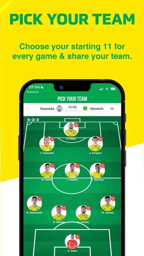 Choose your starting 11 for each Norwich City fixture on our line-up builder and share with your friends socially.