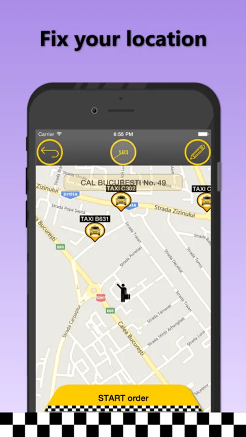 - The location of the terminal is automatic, for adjustment move the map so that the location for TAXI arrival is the desired place.