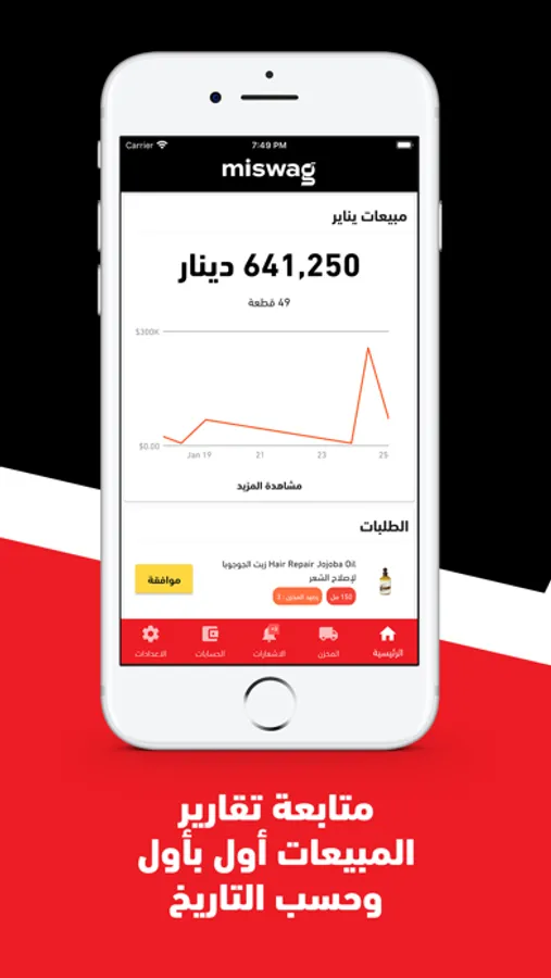 أصبح الآن بأمكان التجار والباعة على منصة Miswag إدارة ومتابعة تجارتهم بسهولة وسرعة فائقة وفي أي مكان عبر تطبيق التاجر الالكتروني الجديد من مسواگ. يوفر هذا التطبيق مزايا عديدة من أهمها: