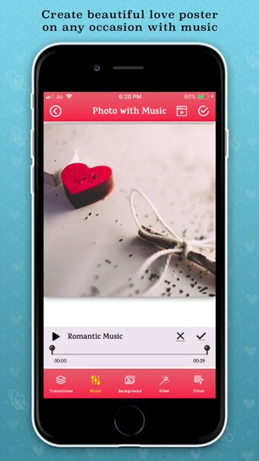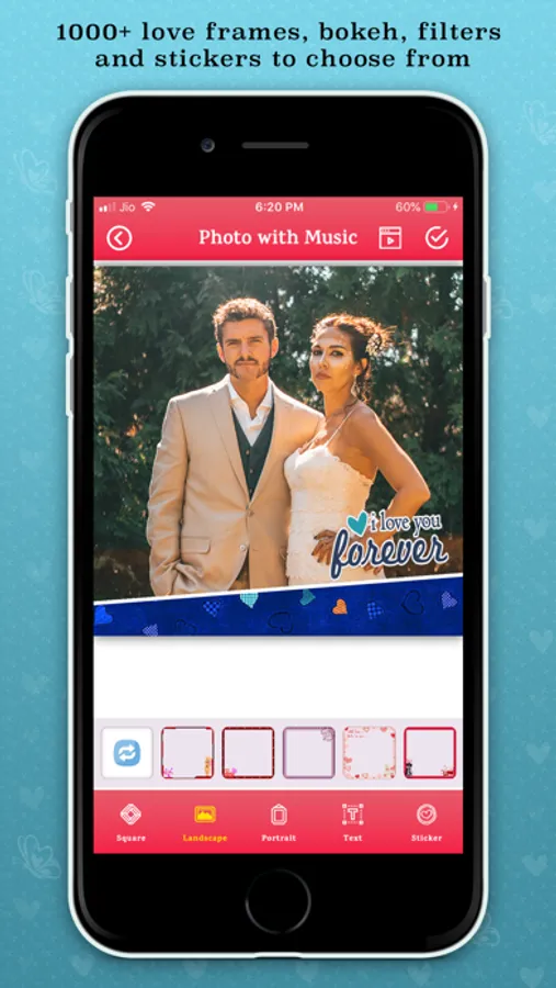 Love Photo Maker also provide romantic and love music and also you can pick music from iTune library, get music from video and record voice for your photo and latest overlay collections.