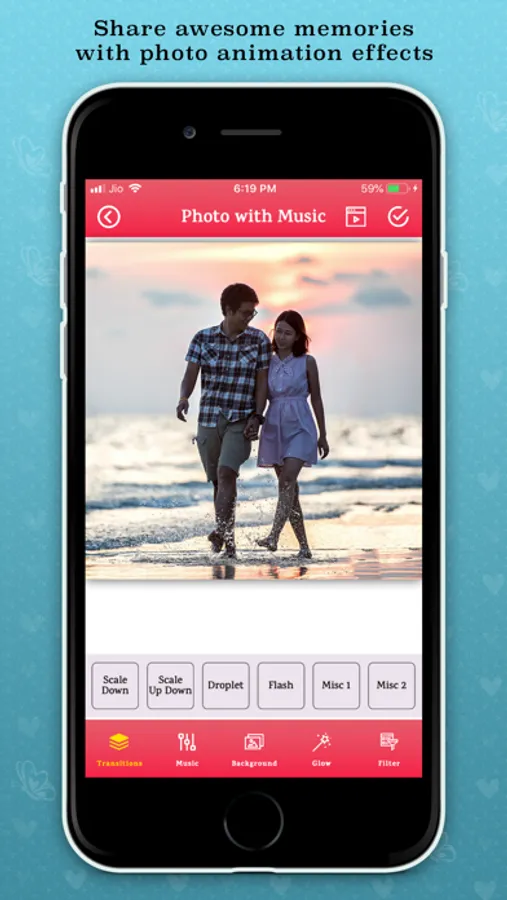 Love Photo Maker is the app where you can create beautiful valentine photo or love photo and love photo with music with different types of transitions, background and many more.