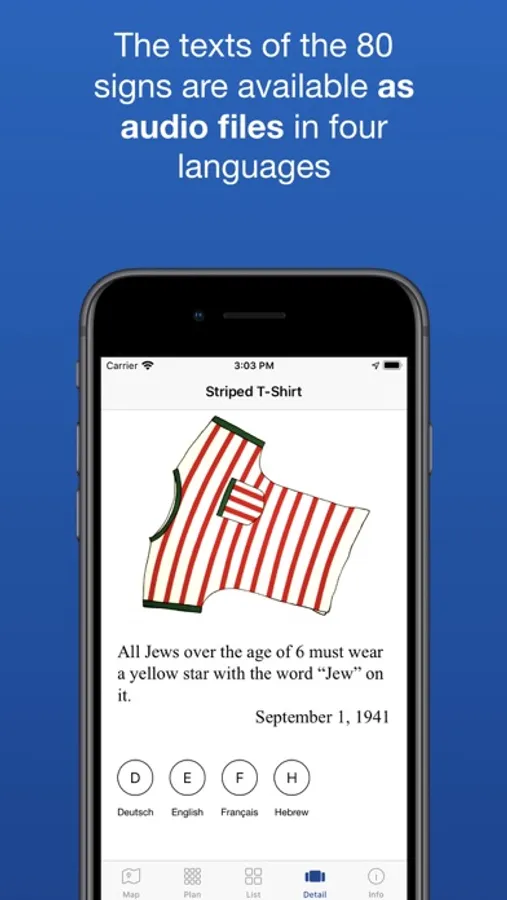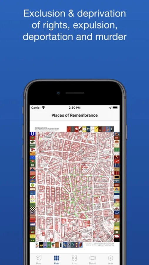 Dispersed throughout the area the memorial becomes a metaphor of the daily deprivation of rights and humiliation, leading to deportations and mass murder of Jews during the Nazi era.