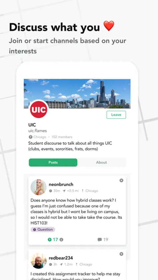 Circa is the location-based community to connect with college students on or off-campus. As you move or travel, your feed changes to display content based on your location.