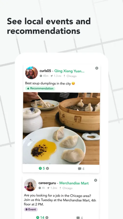 Looking for the next thing to do? View recommendations, photos, and events around you. Everything is within reach because you will not see posts over 25 miles (40 km) away.