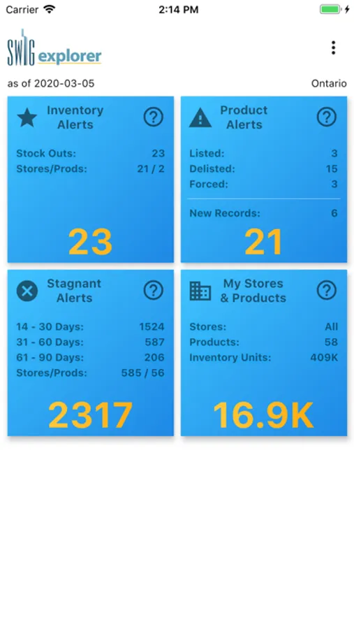 The SWIG Explorer mobile app is a service that allows industry sales forces to track and manage their product portfolios at Liquor Control Board of Ontario (LCBO) stores and warehouses.
