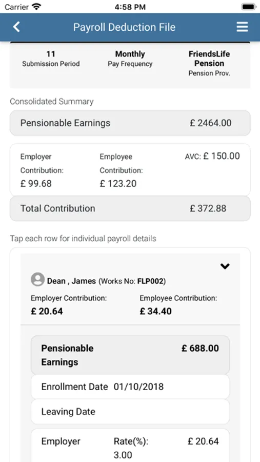 The App provides Auto Enrolment (AE) Workplace Pension service which will seamlessly work with any of your payroll systems. You can use it for AE assessments, Comm. letters, pension calculations, generating payroll deduction files or just for eSubmitting your AE contribution data to various popular pension providers via one sign in.