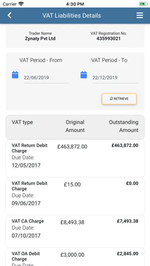 And the MTD VAT service - will extract the current and historical data from HMRC account and tells: