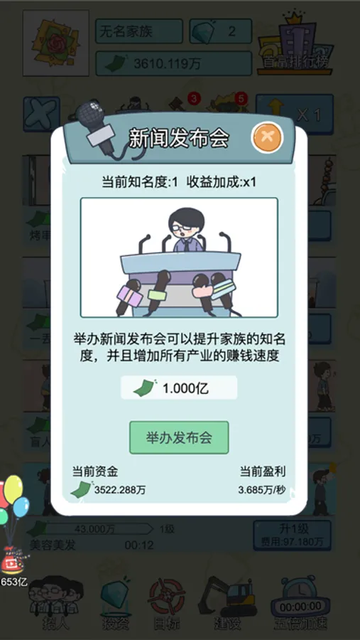 在游戏中可以投资炒股,买车卖车,买房卖房,开设餐饮公司,创办游戏公司,竞选商界领袖,开启火星殖民计划。