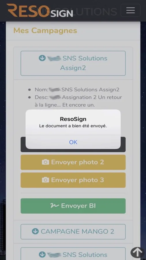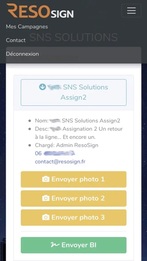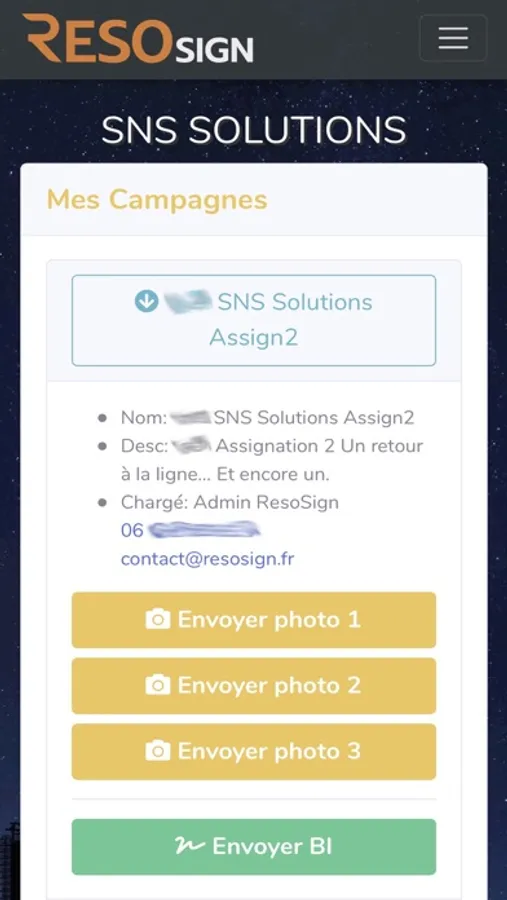 Elle vous permet notamment de retrouver la liste des campagnes auxquelles vous êtes assignés, de transmettre directement vos photos du résultat au réseau et aux clients en fin d'intervention, ainsi que de transmettre de la même manière les bons d'intervention.