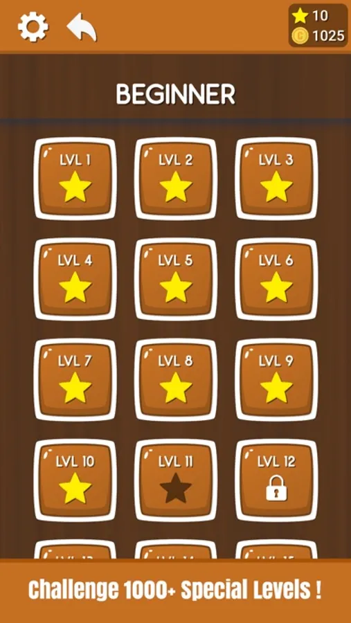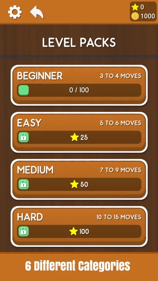 ● Each completed level earns a star, collected stars can be used to unlock level packs.
