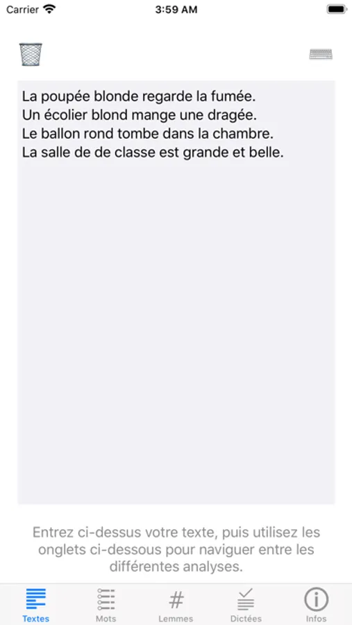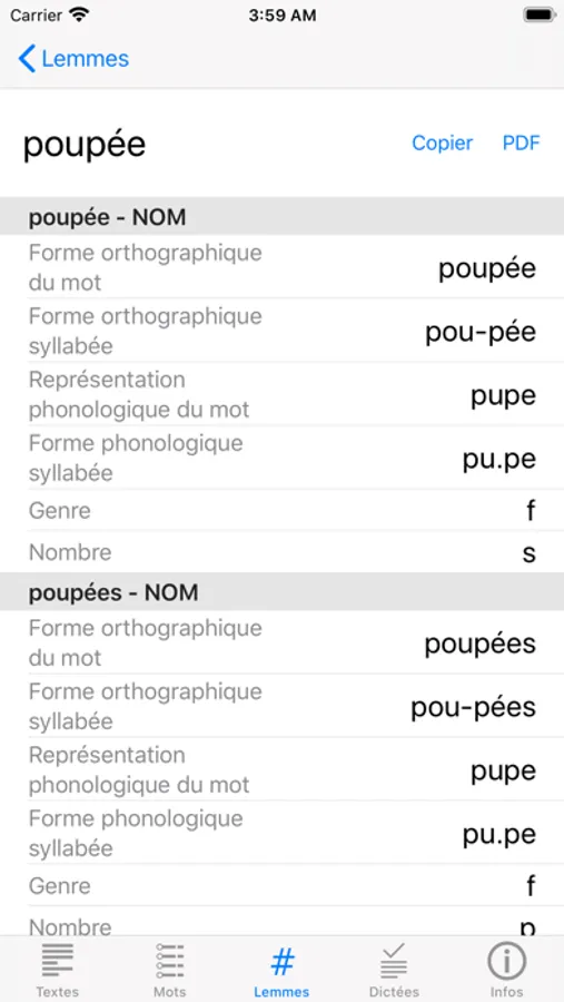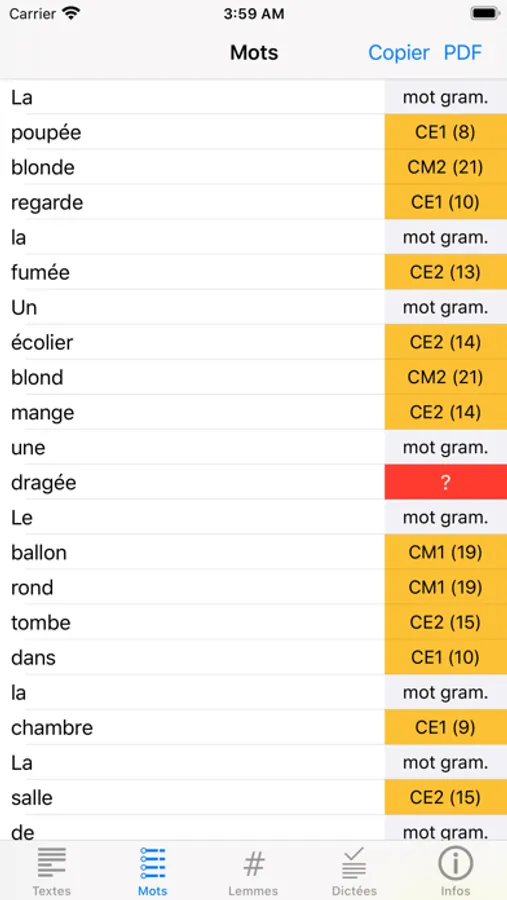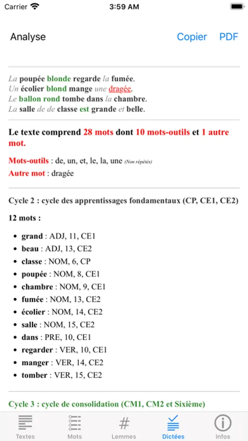 Anatext est un outil qui va extraire les différents mots d’un texte, trouver les lemmes correspondants et le niveau orthographique de chaque lemme . A partir de cette analyse, vous pourrez définir si si le niveau d’un texte vous convient et décider quels sont les mots à travailler avec votre classe avant d’en faire une dictée éventuelle.