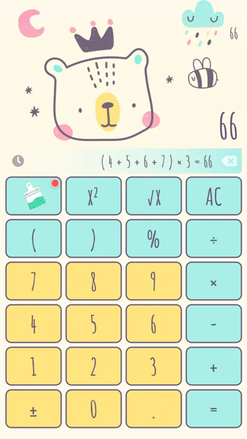 - Built-in 50+ free and exquisite calculator skins, such as "Spring", "Bear", "Rocket", "Valentine", "Swimming Pool", "Unicorn", "Planet", "Cute Cat", "Summer", "Midnight", "Carousel", "Rainbow", "Snow", "Cake", "Aurora", and other cool themes are updated weekly.