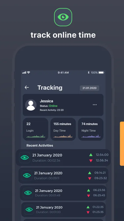 You can review the online activities of the person whom you follow. You can view how many times s/he logs in during the day and how long s/he stays online.
