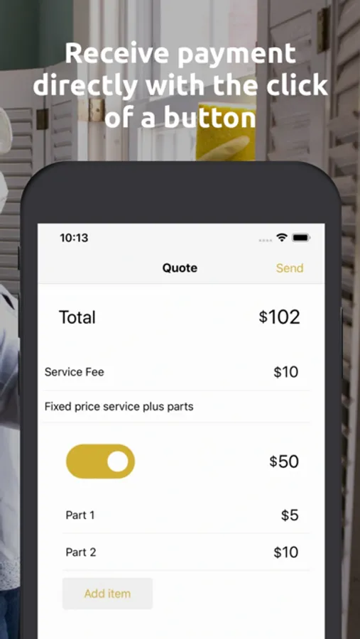 • Receive an app generated code to give your service provider when they arrive to verify arrival and lock in service fee.