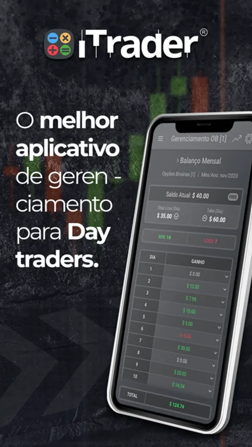 No iTrader você encontra tudo que precisa para ser consistente no mercado financeiro. Faça seu gerenciamento completo, tenha acesso a várias estratégias e cálculos para fazer suas entradas e nunca mais sair do seu gerenciamento.