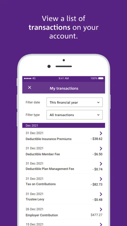 The app is also a quick, easy way to view your super balance, check your last contribution and view a list of transactions on your account.
