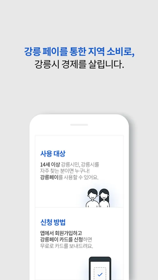 - 강릉페이 복지 정책 대상자이신가요? 강릉시에서 제공하는 정책발행금은 강릉페이 정책발행 카드를 통하여 지급됩니다.