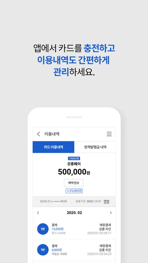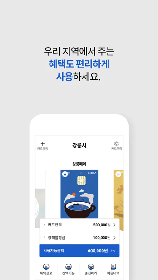 - 강릉시의 모든 가맹점에서 카드로 편리하게 결제하세요.