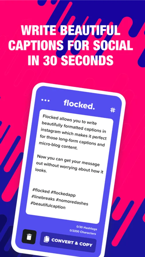 Flocked will help you boost engagement and readability with your posts and give your captions the professional look they deserve.