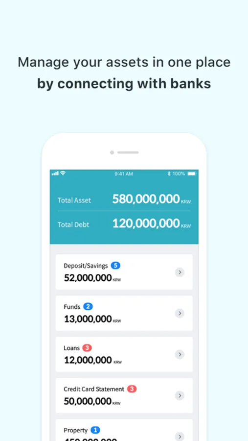 Check your bank account information at a glance, including deposits, funds and loans.